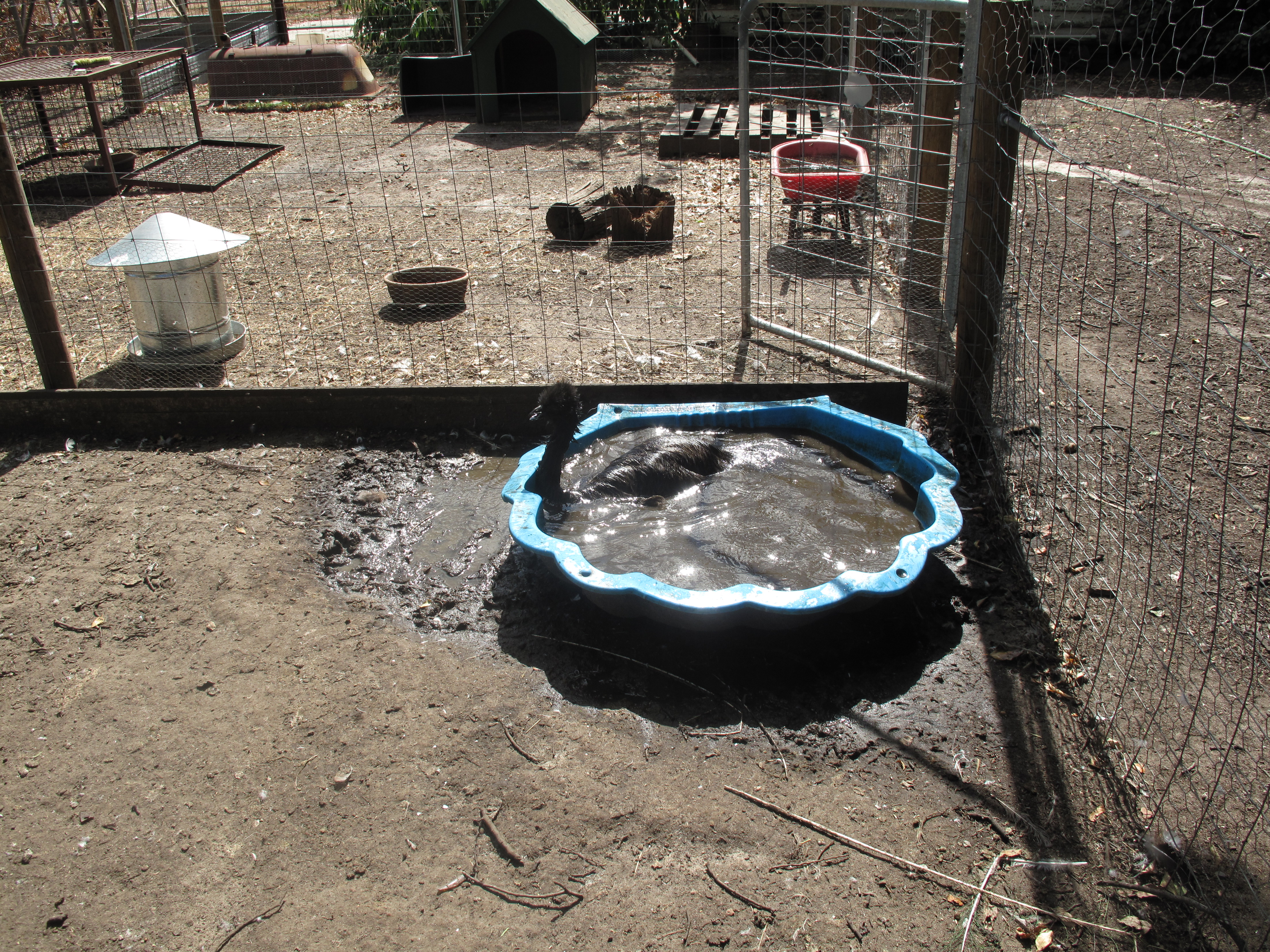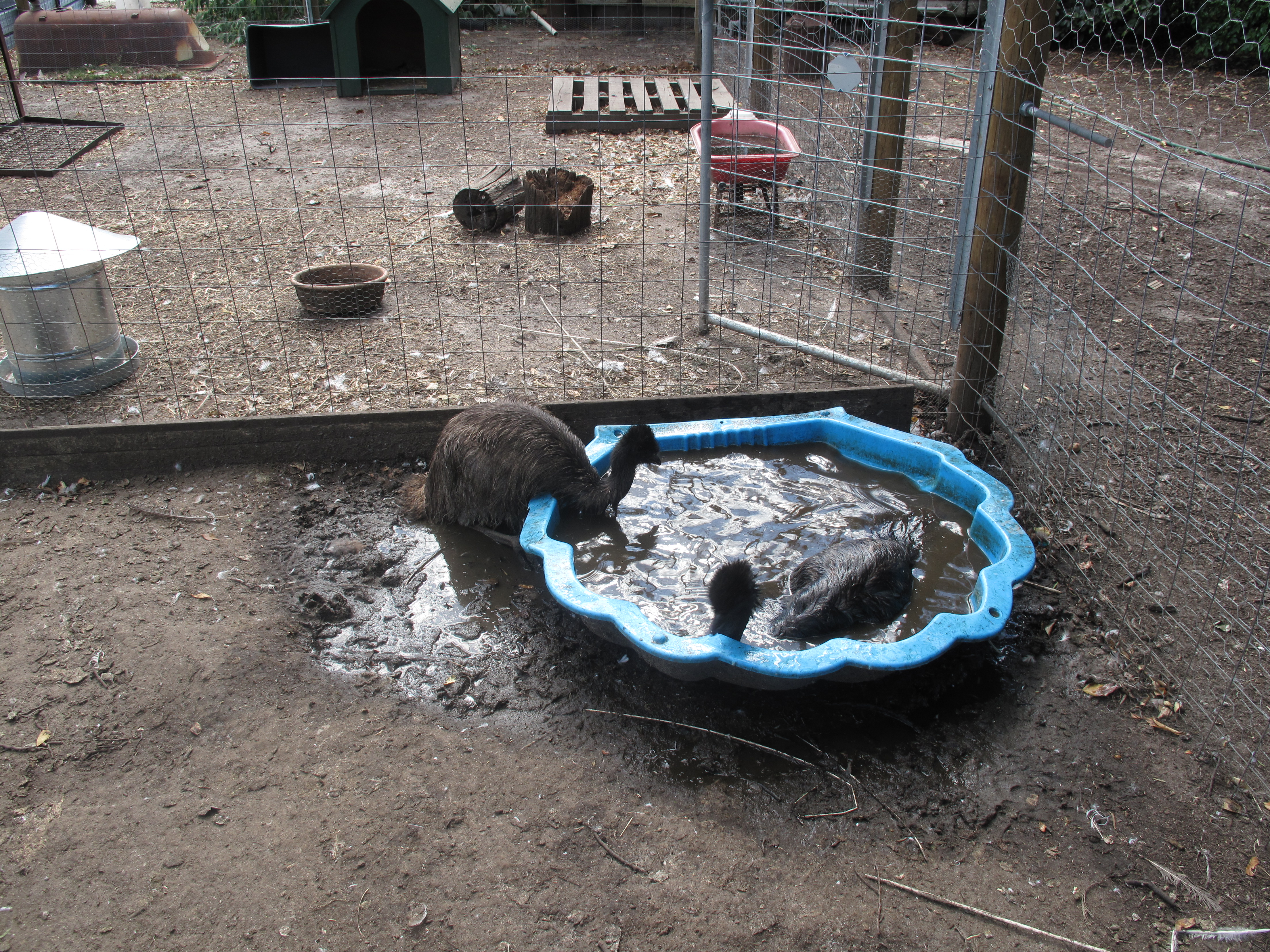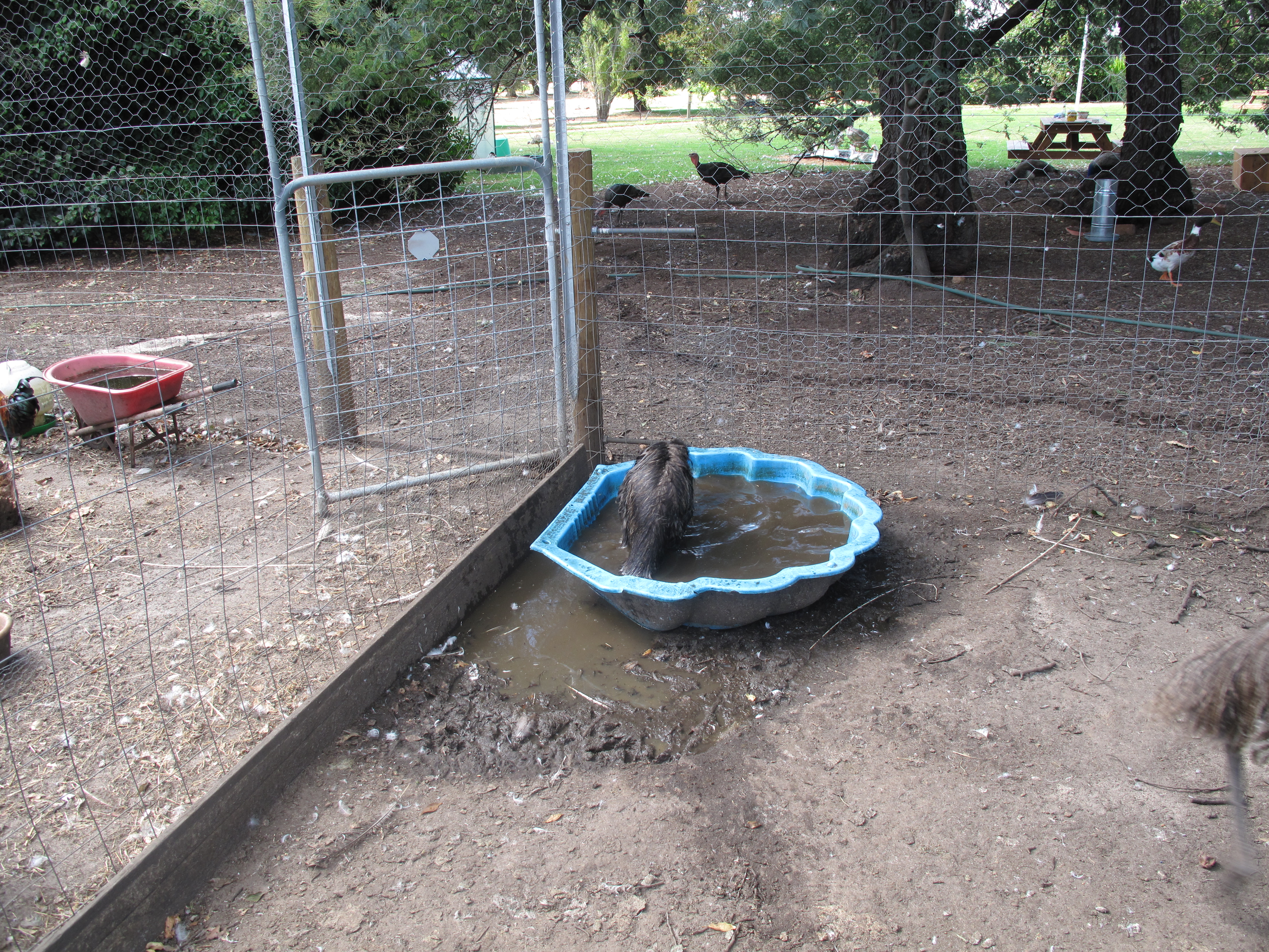 Godfrey: This is getting ridiculous. Since when do emus like to swim? Woody, go and tell them that they may use the kiddy pool for the time being, but no splashing, no pooping and one at a time only.