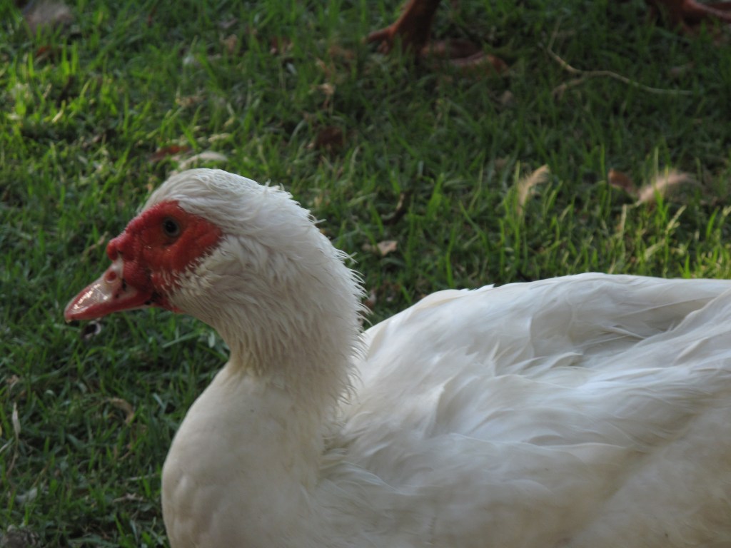 Here is Godfrey, the gander, who guards the other geese. He and I share a love/hate relationship which works quite well – i.e. I give him bread, he nearly bites my hand off, I say ‘no Godfrey!’ and then we repeat the ritual. Don’t ask me why I persevere! Maybe it’s just that I admire his magnificent stance; after all, to him I am but a mere mortal.