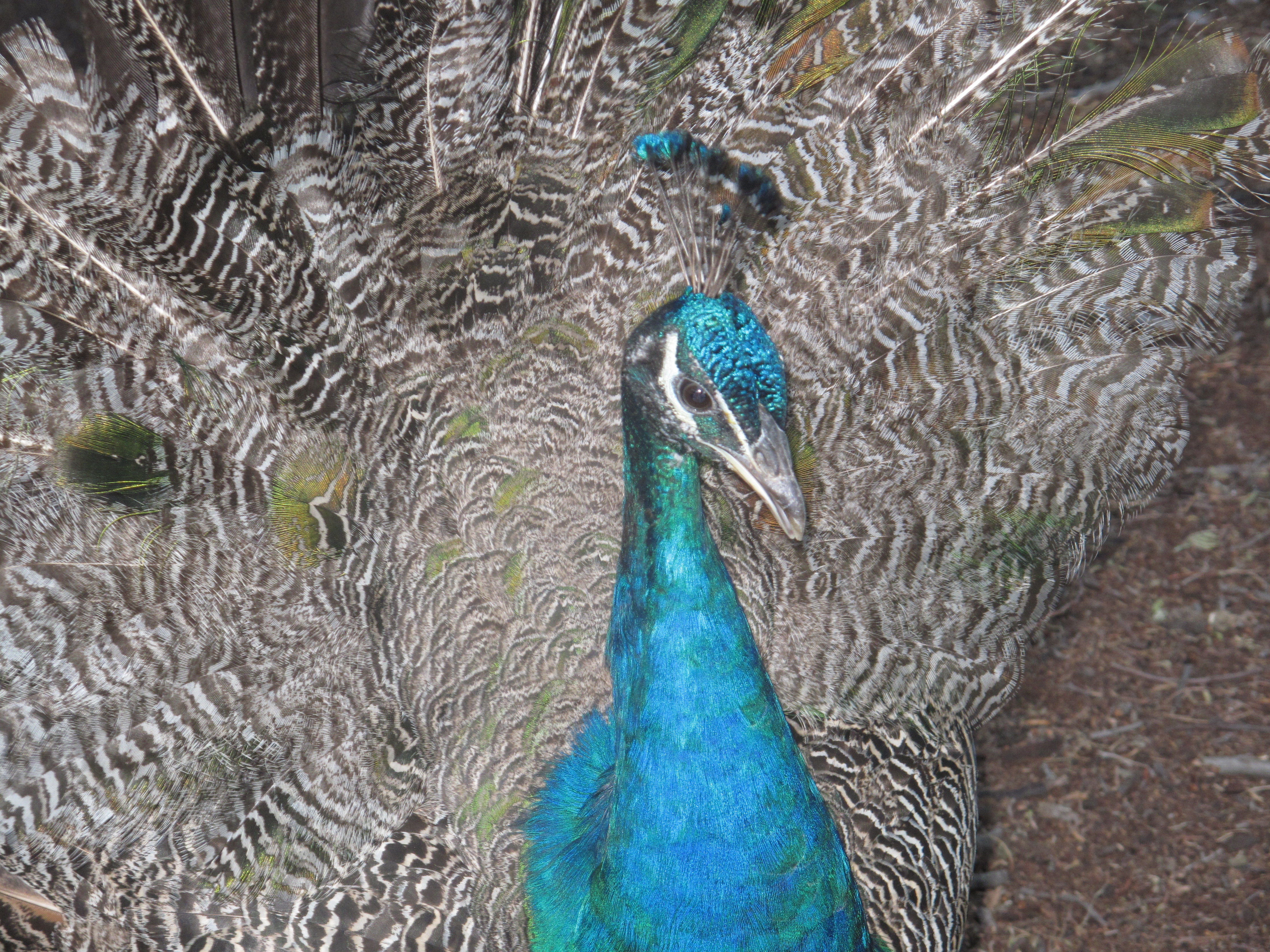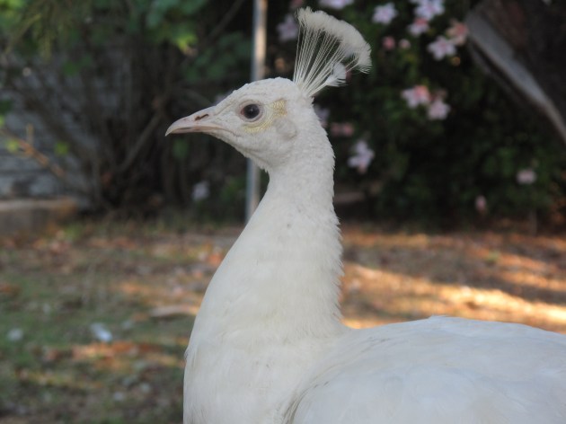 And below we have Brad, the adolescent blue peacock showing his fiancee, Angie, a white peahen, that he is getting into the groove. He is pretty thrilled to now be developing those famous ‘eyes’ in his feathers!