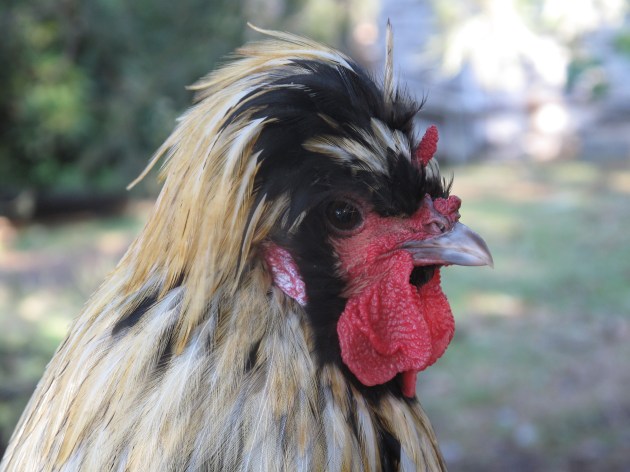 And, to cap this little experimental photo journey off – my best photo of today is of my least favourite bird (Tina Turner, the rooster who attacks my legs all the time). He didn’t do so today because my camera was intimidating him; also he seemed to almost be posing! Now that I know he isn’t a hen, I have promised to re-name him Sam if he stops the attacks!