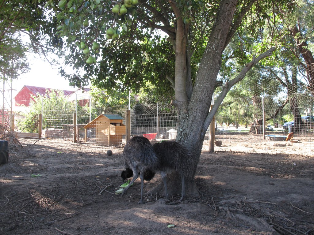 The other thing that concerns me is the risk of concussion from falling pears. You see, in the emu yard there are two pear trees with great big pears dropping off all the time. Some of these pears are the size of an emu’s head, so what if….?