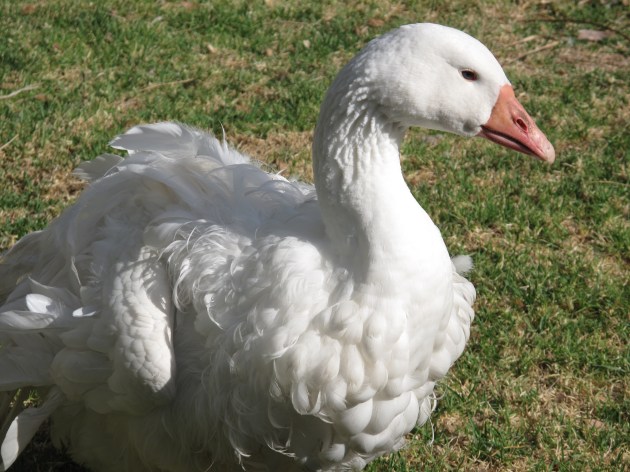 To recap, Diamond and Woodroffe are our two Sebastopol geese. Here they are together. Diamond is on the left and Woody is on the right and has that distinguishing ‘freckle’ on his forehead.