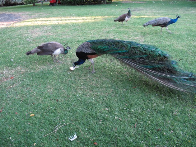 Speaking of fledglings, these two peacocks have nearly grown their ‘King’ feathers …