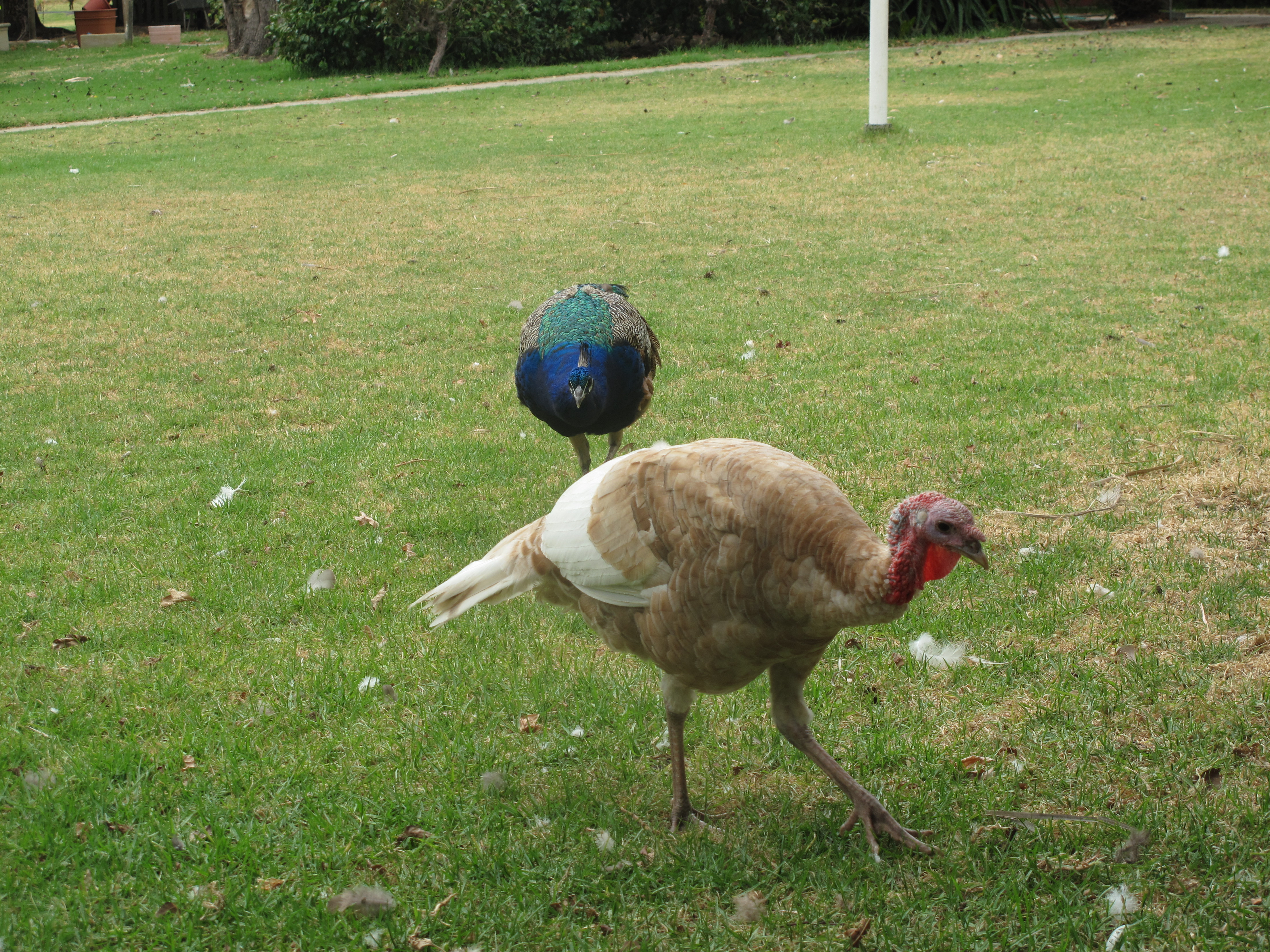 The turkeys look angry but, because I got them as babies, they are very tame and love being handfed and patted. They are fantastic friends. The peacocks (several) love being handfed but don’t like being patted. I have some great pictures of them in previous posts. Are you going to get Kupa a mate?