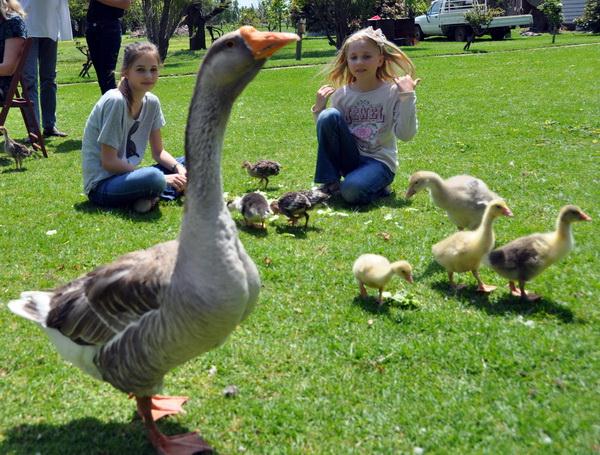 Ola is the little gosling turning the ‘wrong’ way in the picture below – ha! If you have seen previous posts, you will know that Godfrey, our godfather gander has been trying, for nearly a year now, to whip these babies into shape. Ola not only defies him, she ignores him!