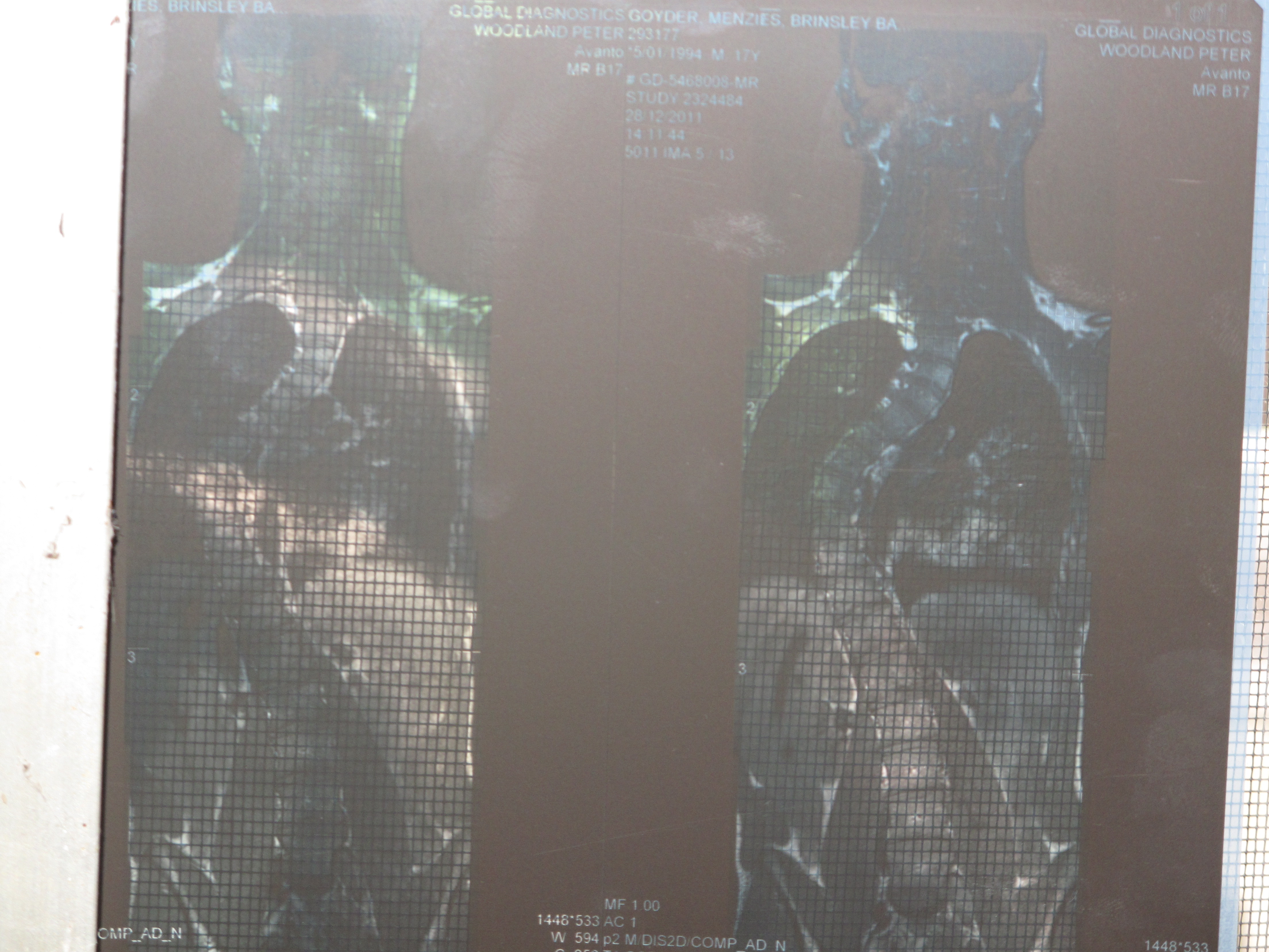 However, despite taking Son to numerous series’ of appointments with a chiropractor, physiotherapist, osteopath, kinesiologist, personal trainer and others (all of whom were wonderful and possibly prevented his scoliosis from getting even worse), the following X-ray speaks for itself. Surgery, which we hadn’t contemplated before, became a matter of inevitabilty rather than an option, so we saw a surgeon and Son was told he would have to have surgery and that he must stop playing football immediately. As this was two days before a school football trip in which Son was the star attraction (of course he wasn’t the star attraction, but I’m his mother so I like to say things like that), the devastation of this news was difficult to deal with and I will never forget Son’s sobs after that appointment.