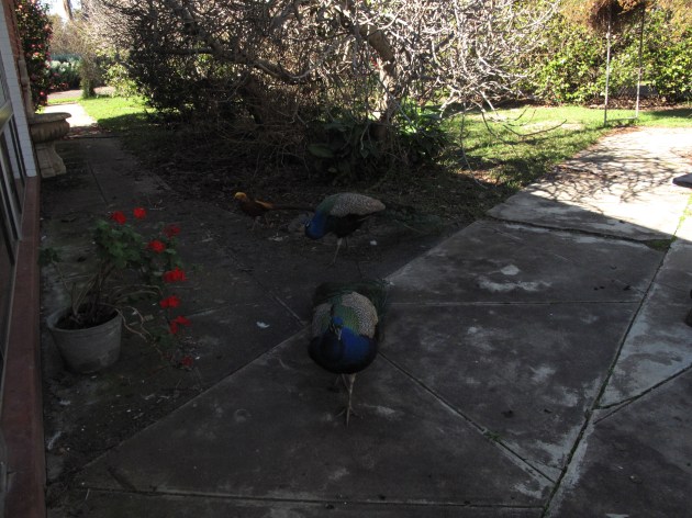 Just outside the back veranda door there are two peacocks wishing I would take better photographs of them