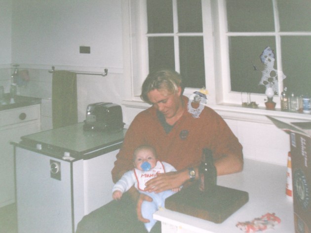 Sixteen years later and S. has his own little son and here is Ming holding him. I love the resemblance of the two photos, both taken in our kitchen.