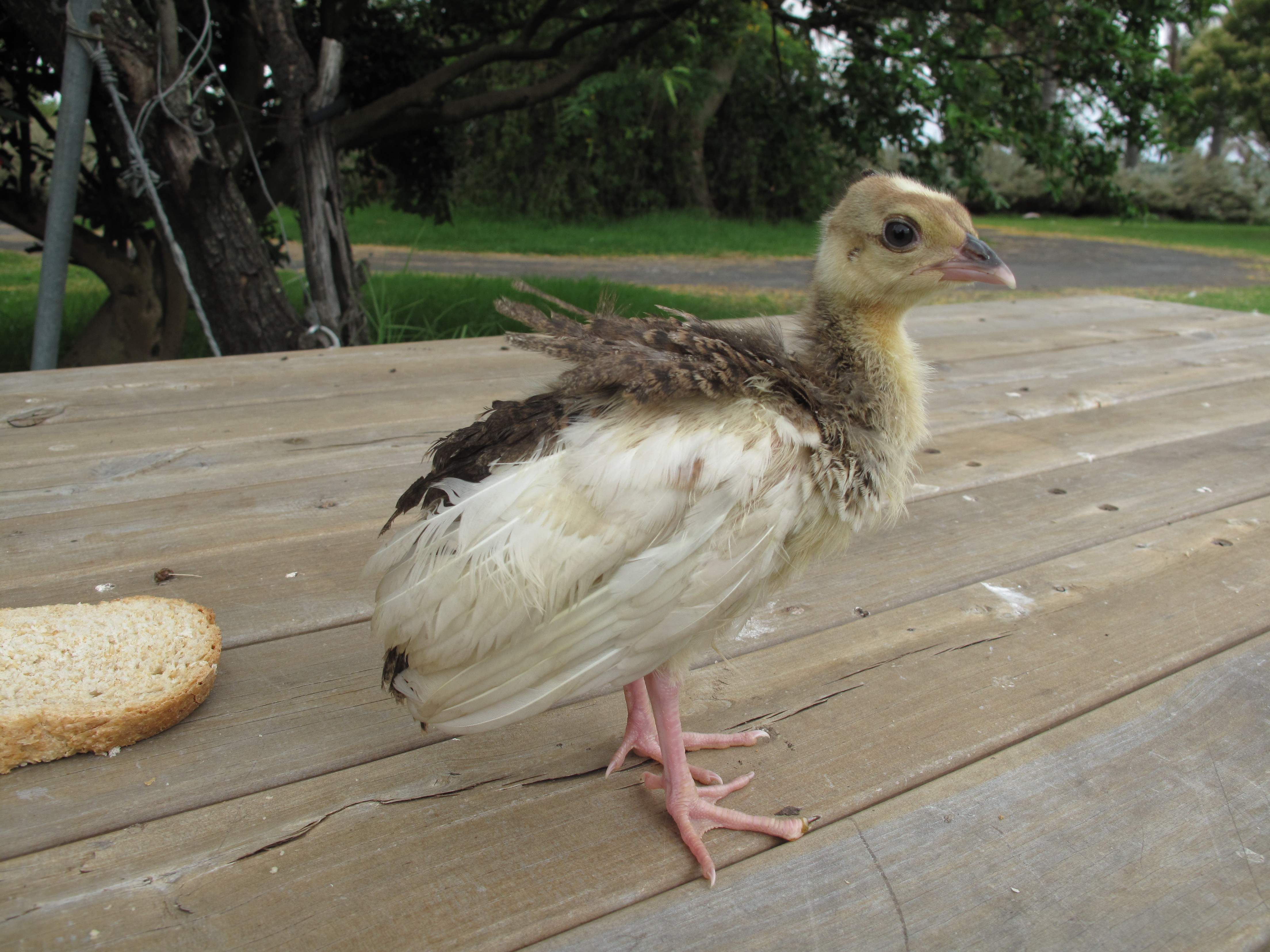 G9 is now too big to be taken by a crow, fast enough to avoid the pecks of the pecking order, and can fly up to the height of a picnic table or low branch. His wonky leg is almost normal and he no longer walks with a limp. He sleeps happily all night with the ducks, Zaruma and Tapper, spends a few hours on my lap during the day and is nearly old enough to free range around the farm with the others. My biggest worry is he will fall into the pond and not be able to get out but yesterday he actually did fall in and flew out quite easily.