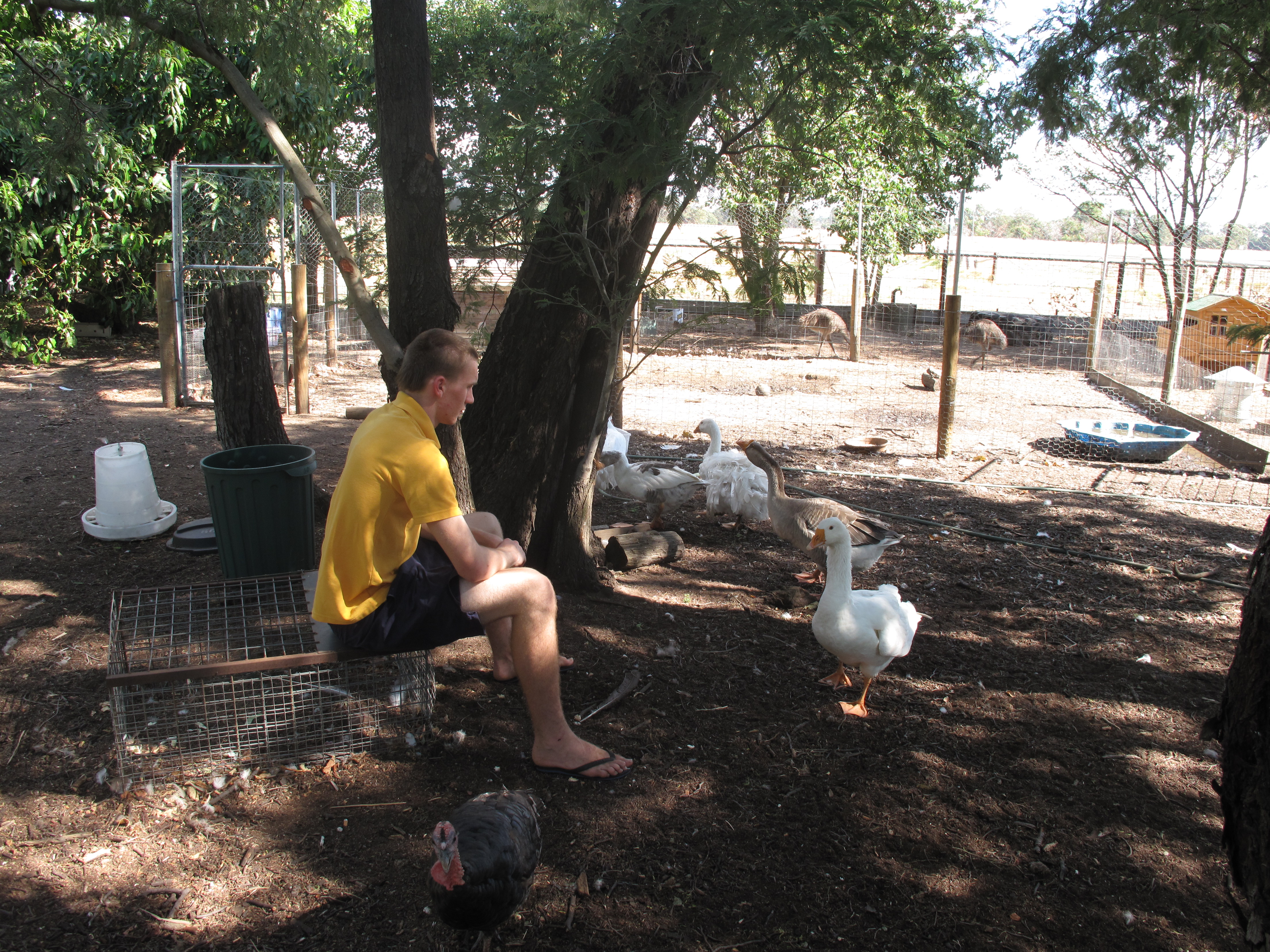 Ming: Your geese poop on my shed doorstep and your peacocks poop on the car!