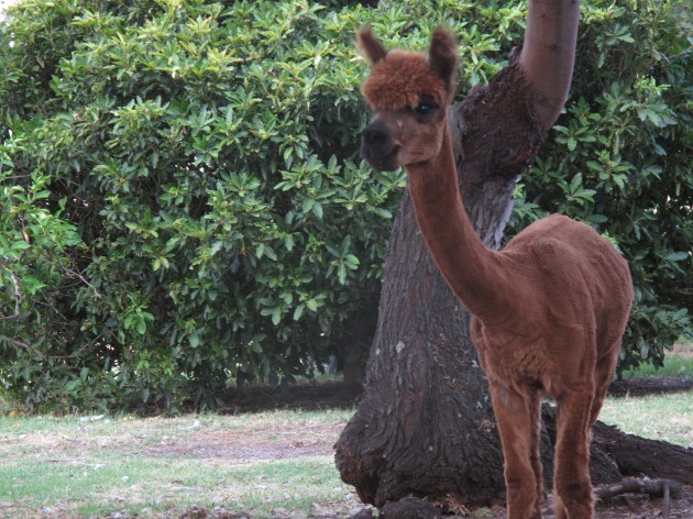 Now that the Emerys (emus) are big enough, we have been able to transfer them into a larger area to join Okami and Uluru, the alpacas. This is the first time I have ever seen the alpacas a little feisty. Today, whenever the Emerys ventured near to the alpacas, Okami, the biggest, would hiss and Uluru would copy him. This caused the timid Emerys to zigzag-sprint all over the place – hilarious!