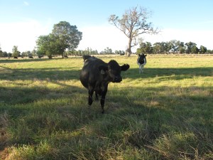 As I was about to turn into our driveway I noticed that a young steer was on the road (had gotten out of one our neighbours’ paddocks), so I quickly texted Ming with: