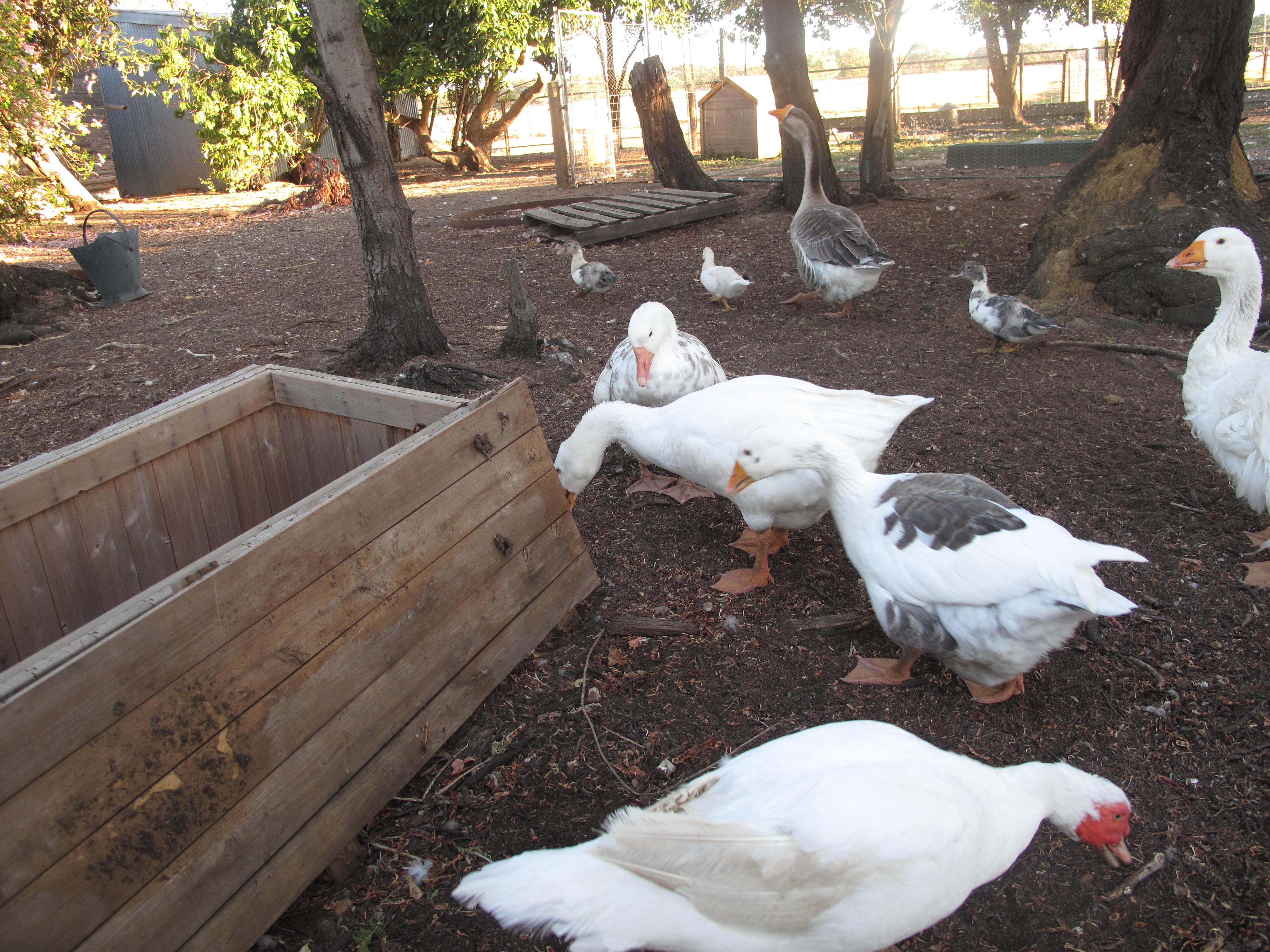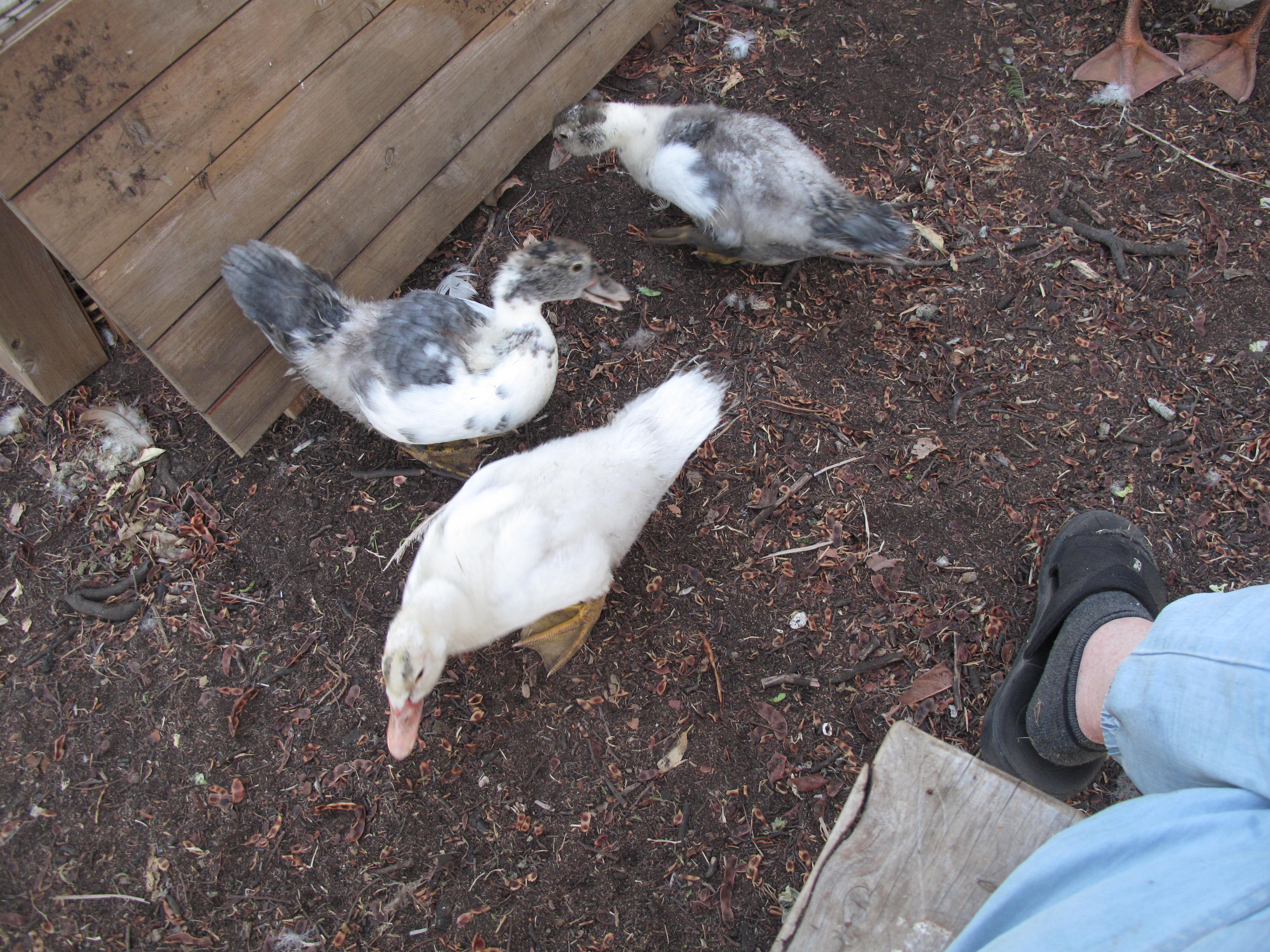 Well the three ducklings have grown so quickly that they are almost too big to squeeze through the fence of the yard I put the gang in at night. They free range with their ‘minders’ all day.