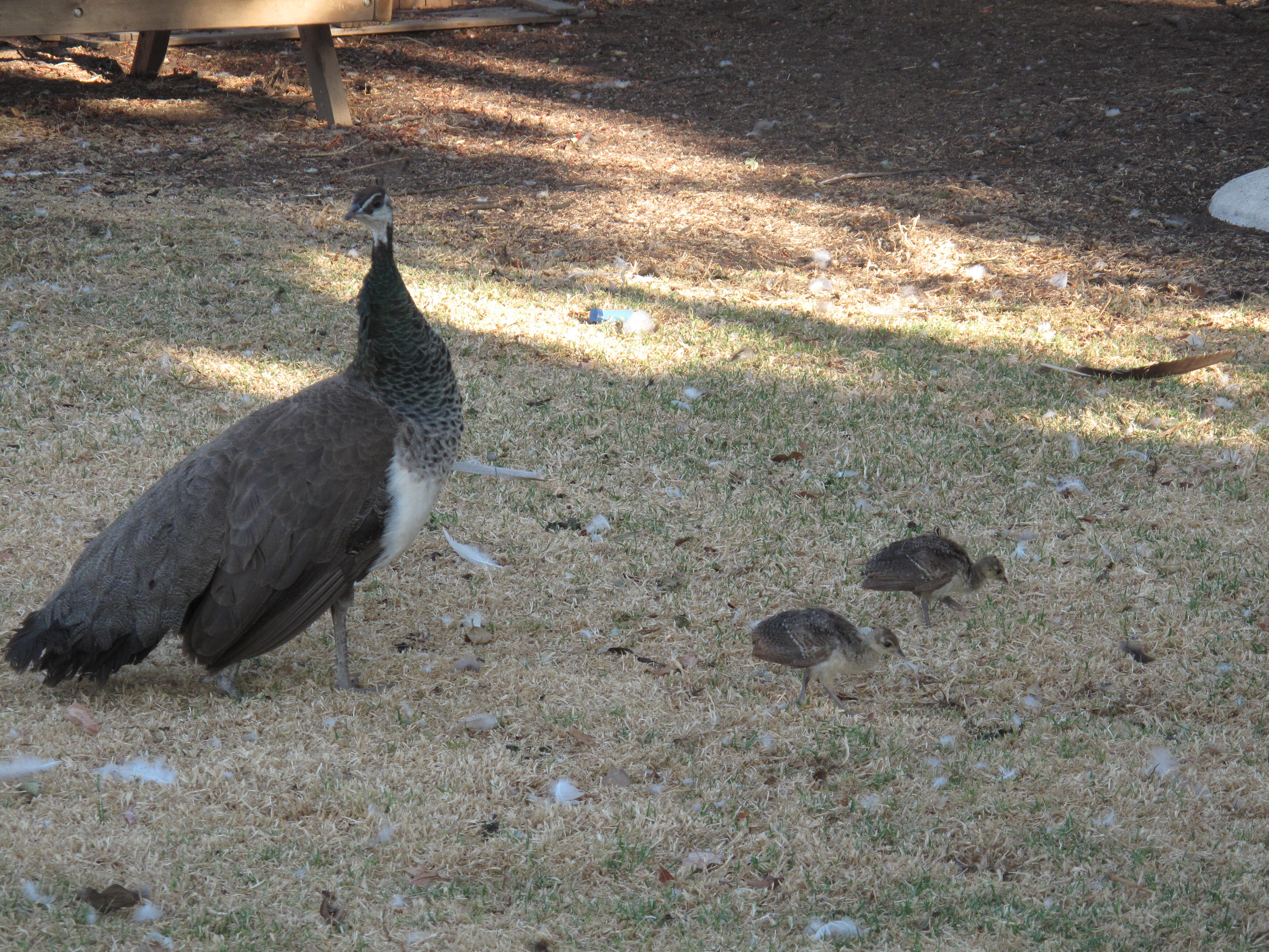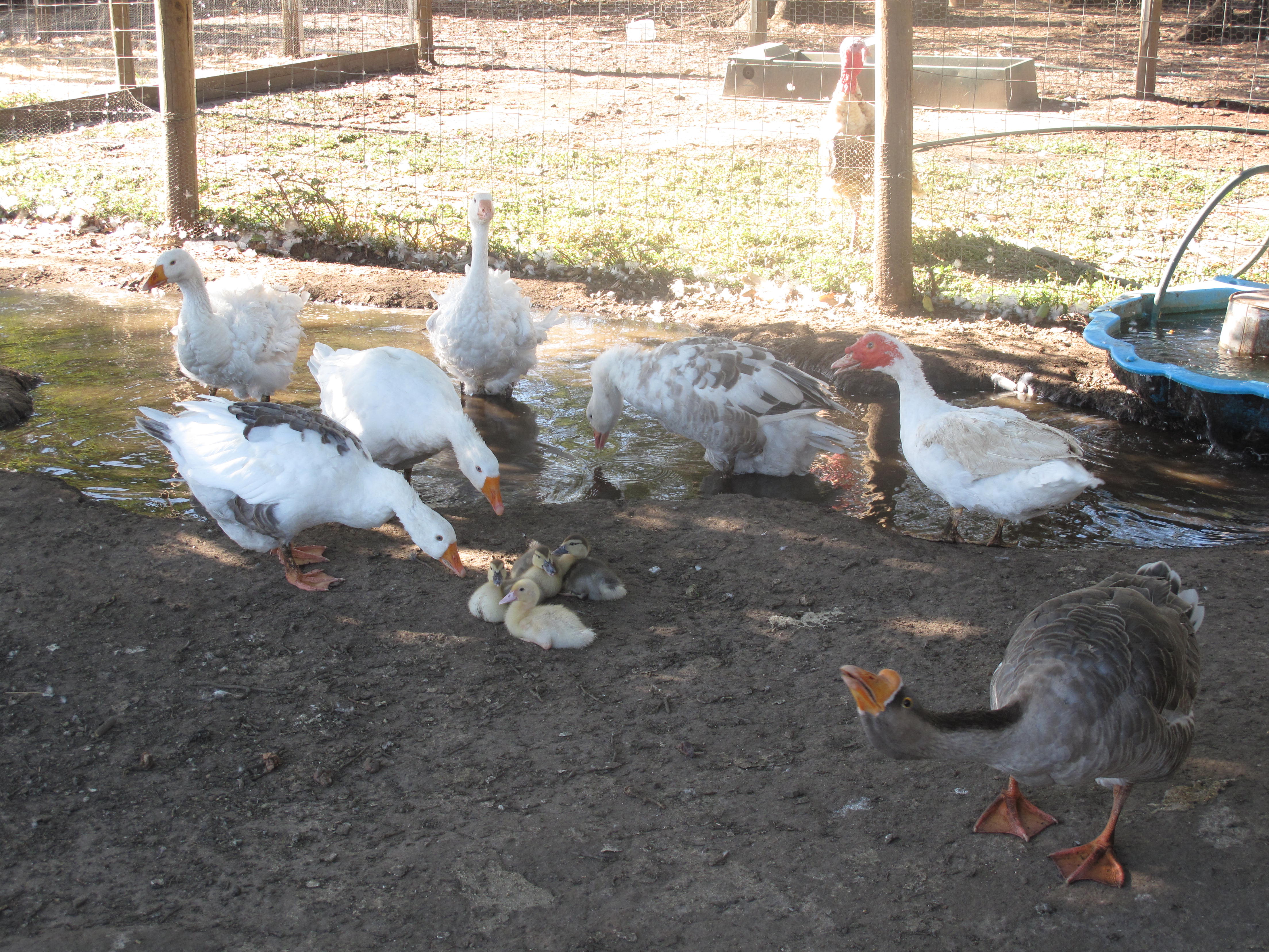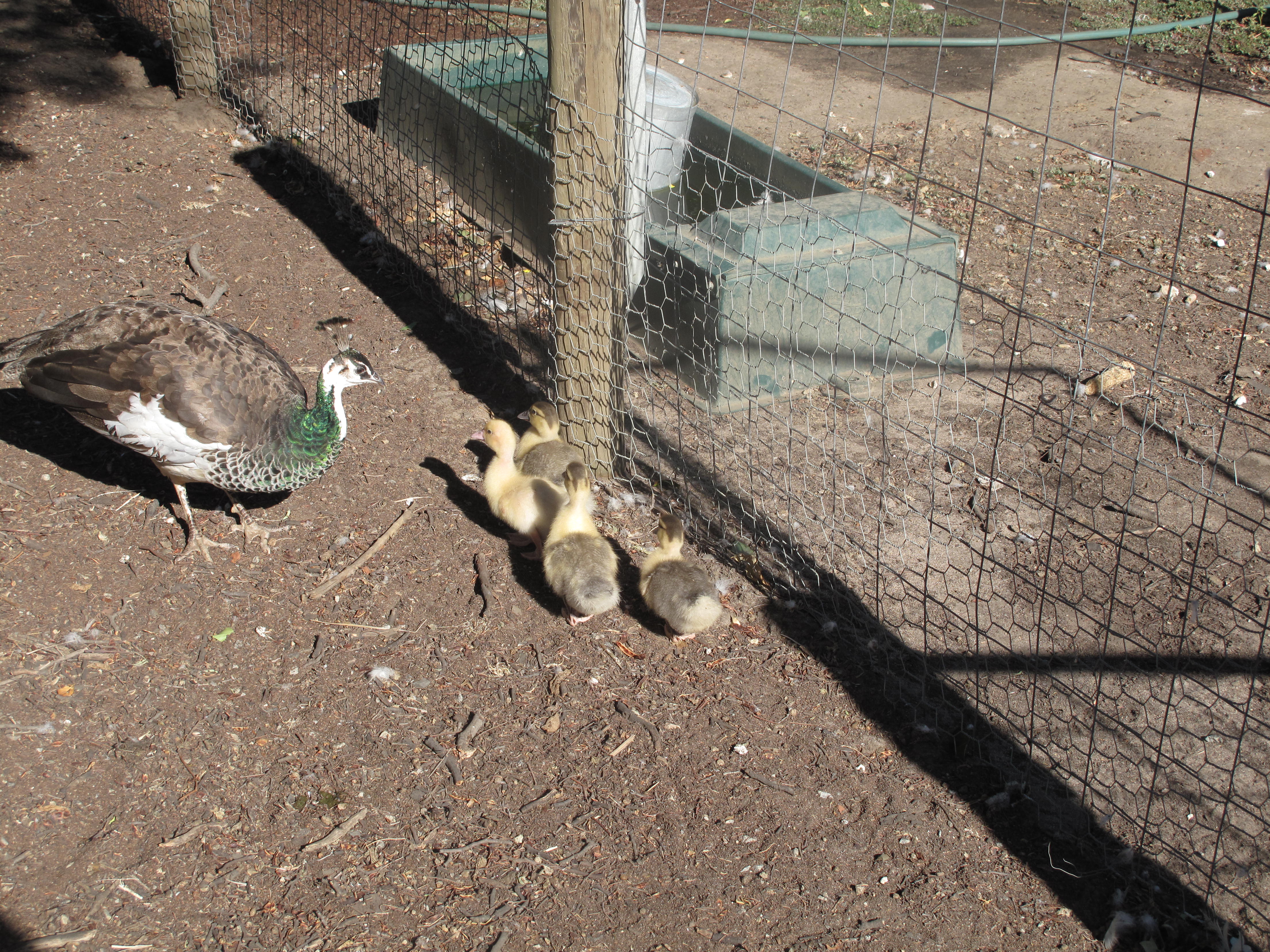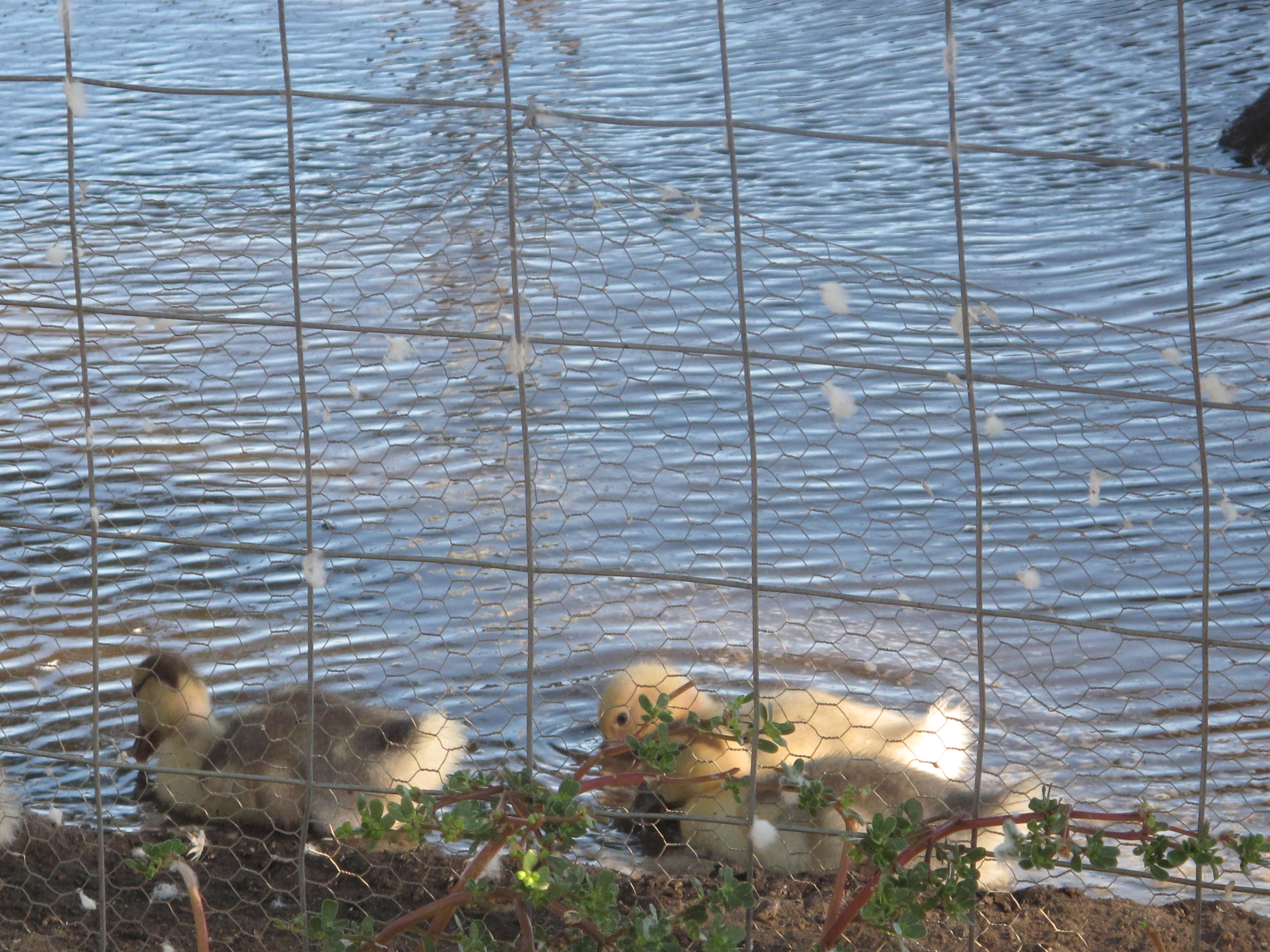 I had put the gang, including ducklings, into their yard for the night, then turned the hose on the avocado tree which is right behind Ming’s shed where he now lives. As soon as I turned the hose on, Michael Jackson squeezed through the fence and began swimming in the growing puddle. The other two ducklings (the ‘Twins’ because they are identical) followed Michael Jackson to the puddle, so I had to let Godfrey out again in order to herd them back in. He gave me his usual ‘look’ – a combination of ferocity and disdain.