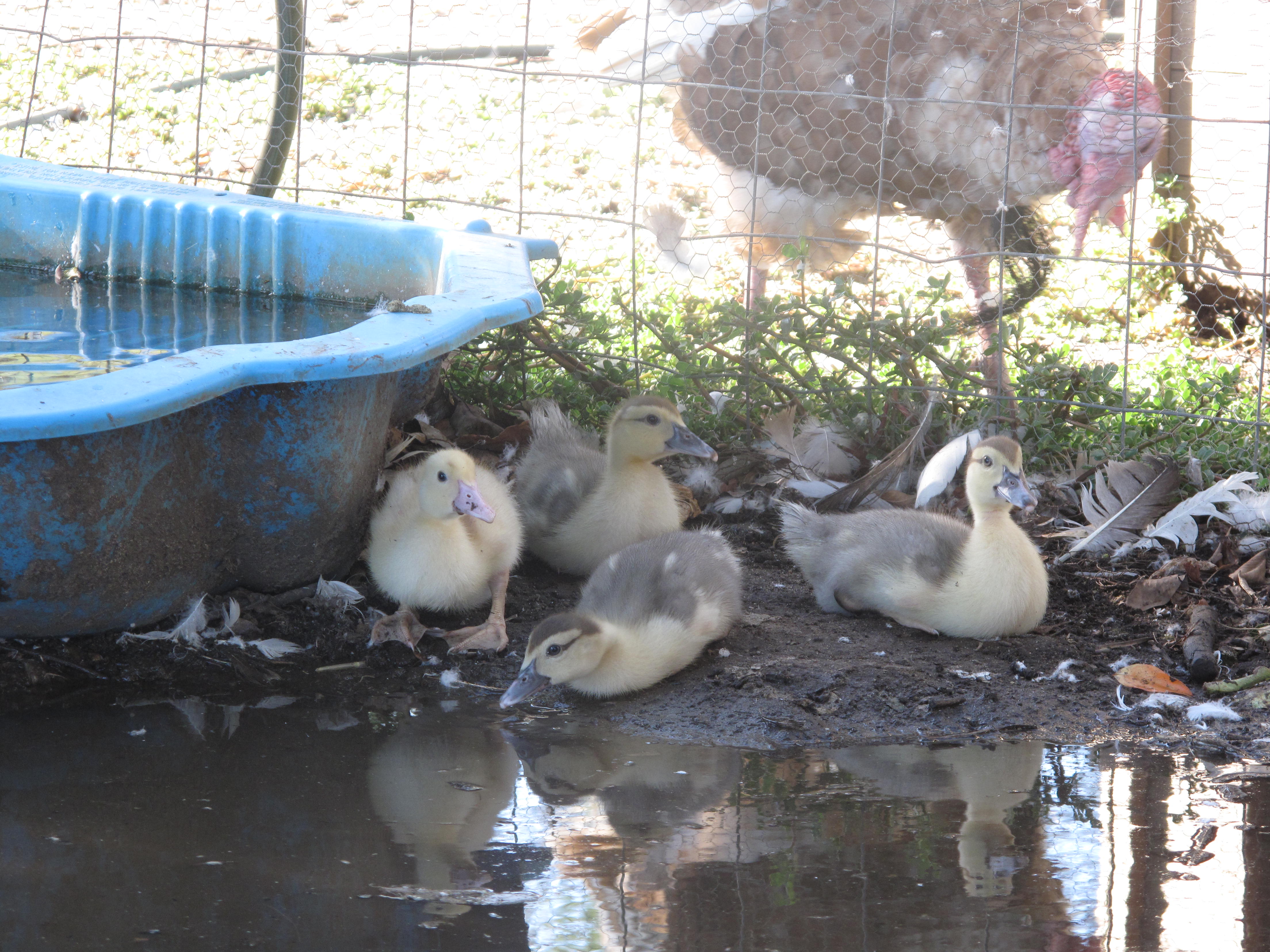 At that very moment, Ming began to play his guitar very loudly and the birds and I got a bit of a fright. Well, little Michael Jackson went crazy and I nearly ran to Ming’s shed to tell him to stop the noise until I realized that the duckling was actually dancing! It ran around in circles, twirled around in the puddle of water, threw itself at the twins and frolicked madly. When Ming stopped playing his guitar for a few moments, the duckling just stood still, as if waiting, then, when Ming resumed, the whole happy dance thing happened again. It’s one of the funniest things I have ever seen and I wish I had it on video.