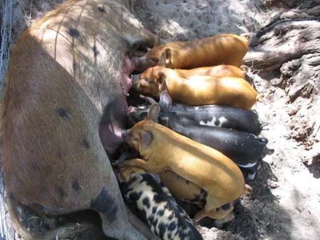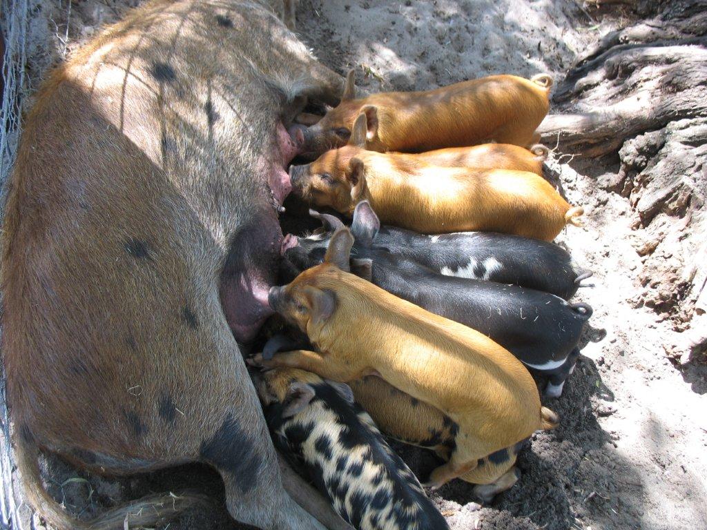 Well, Vegemite has just become a mother to six piglets! The next photo is courtesy of Gavern, who now looks after Mathilda and Veggie.