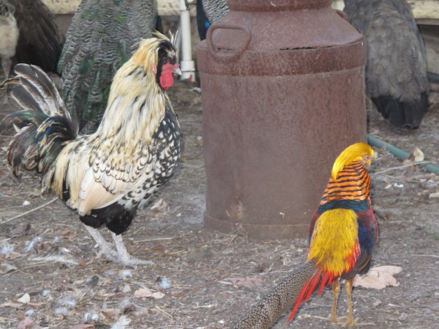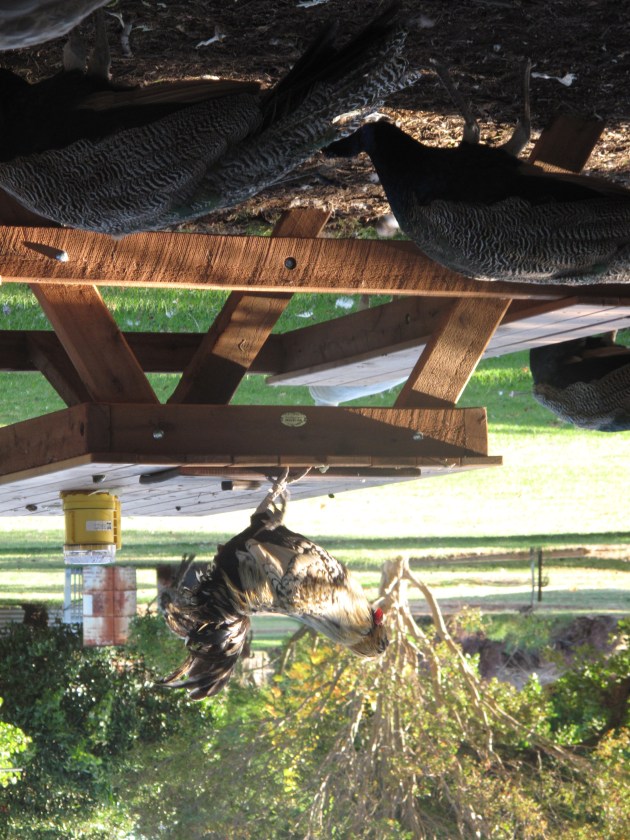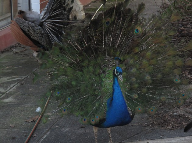 Adolescent peacock 1: I can’t turn around because you’re in the way. I’ll try again tomorrow – I’m exhausted.