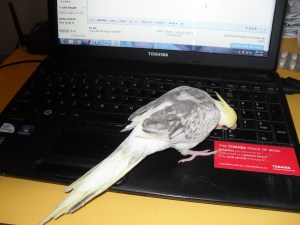 So why does this weiro keep interfering with my work? She has a cage on our enclosed veranda but, for most of the day, the cage is open so she can come and go anywhere in the house she likes. However, as my office is at the far end of this veranda, she keeps flying to me. At first I was flattered, but it’s not me she’s interested in; it’s the computer.